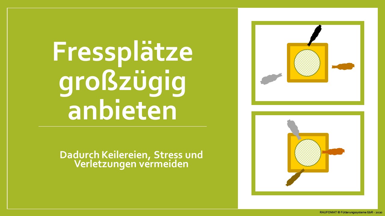 Die Raufomat-Übergrößen dienen NICHT dazu, dass sich 8 oder 12 Pferde an einer einzigen Raufe drängen und dort um ihr Heu kämpfen müssen! Eine Pferdehaltung mit überfüllten Raufen führt immer zu Stress und Rangeleien, wobei immer die rangniederen Herdenmitglieder das Nachsehen haben. Eine solche Pferdehaltung passt weder zu unserer Philosophie noch zu einer modernen Pferdehaltung und wird von uns zum Wohle der Pferde nicht (wissentlich) unterstützt!