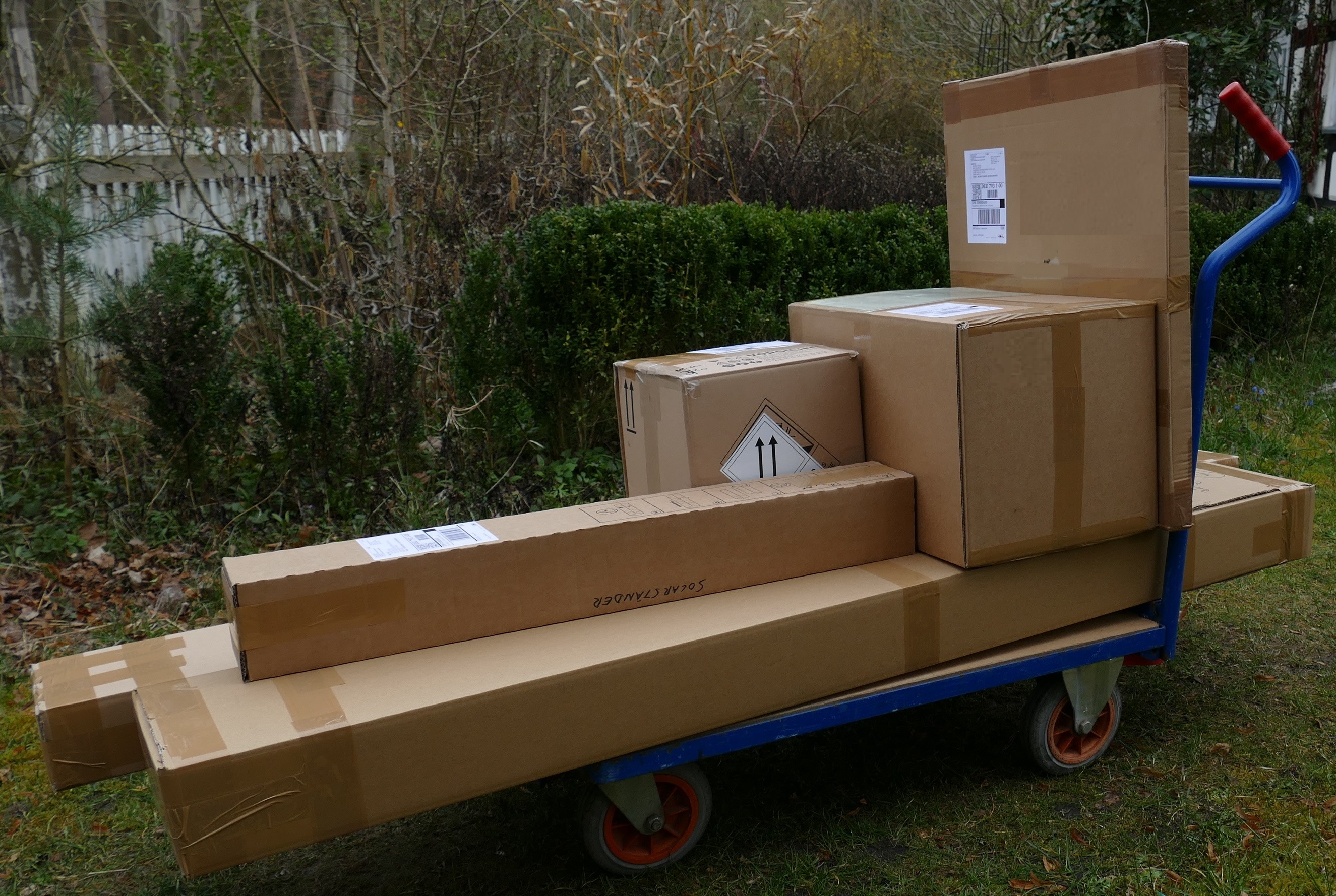 Ein Raufomat Solar, verpackt in 6 handlichen Paketen zwischen jeweils 5 und 16 kg wartet auf den Versand ...