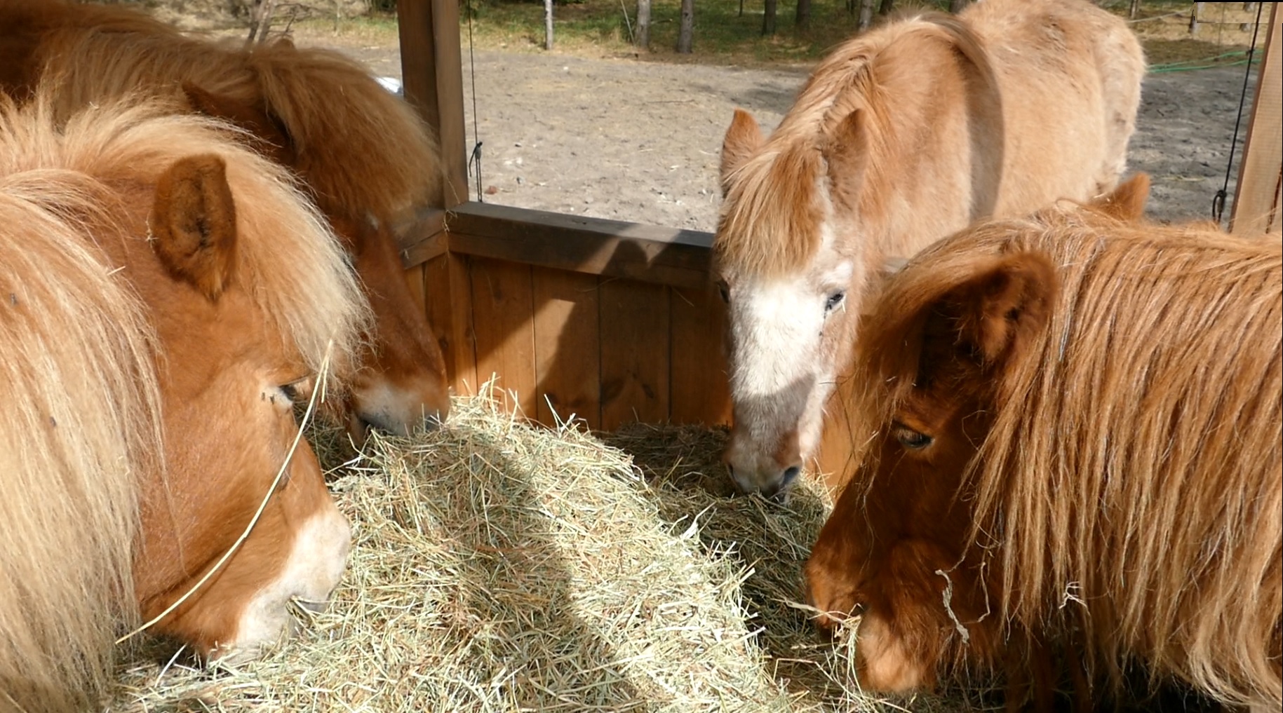 Bei der Kombination von Kleinpferden mit Shettys können Raufen-Aussparungen eine gute und sichere Lösung sein.