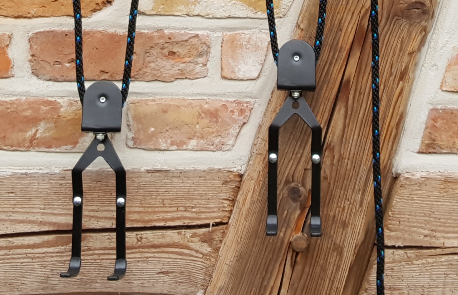 - 2 Aufhängevorrichtungen mit Flaschenzugrollen