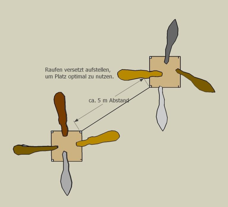 Der Schaltkasten wird normalerweise an einer der Raufen befestigt. Zwischen den Raufen sind ca. 10 - 15 m Abstand möglich.