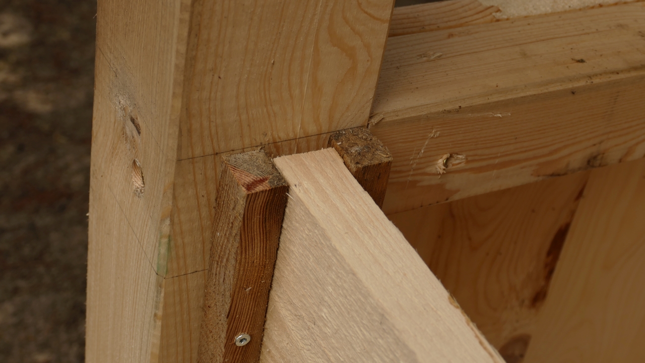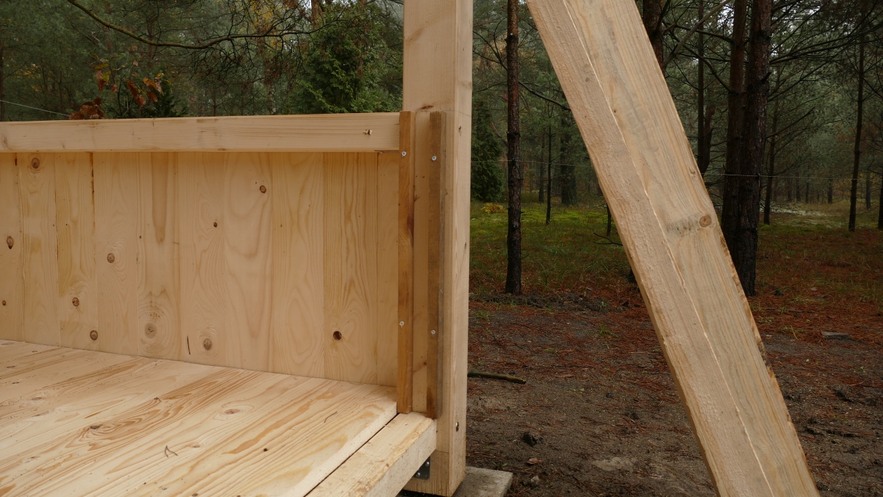 • Die Seitenwände der Raufe müssen mind. einige Millimeter nach innen versetzt befestigt werden, damit seitlich nichts über die absolut senkrecht im Lot stehenden Eckpfosten hinausragt.