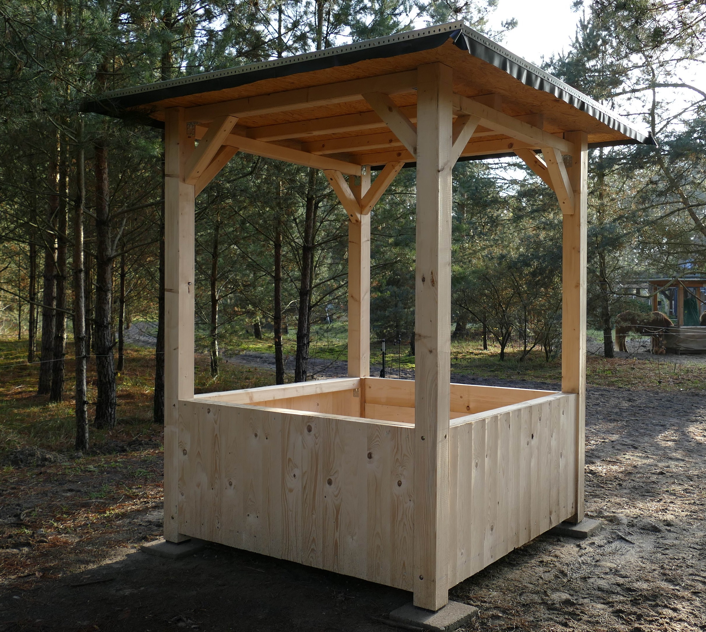 Sie bestimmen eigenverantwortlich die Abmessung, Holzart und Dachform Ihrer Raufe, und wir fertigen den passenden Raufomaten an.